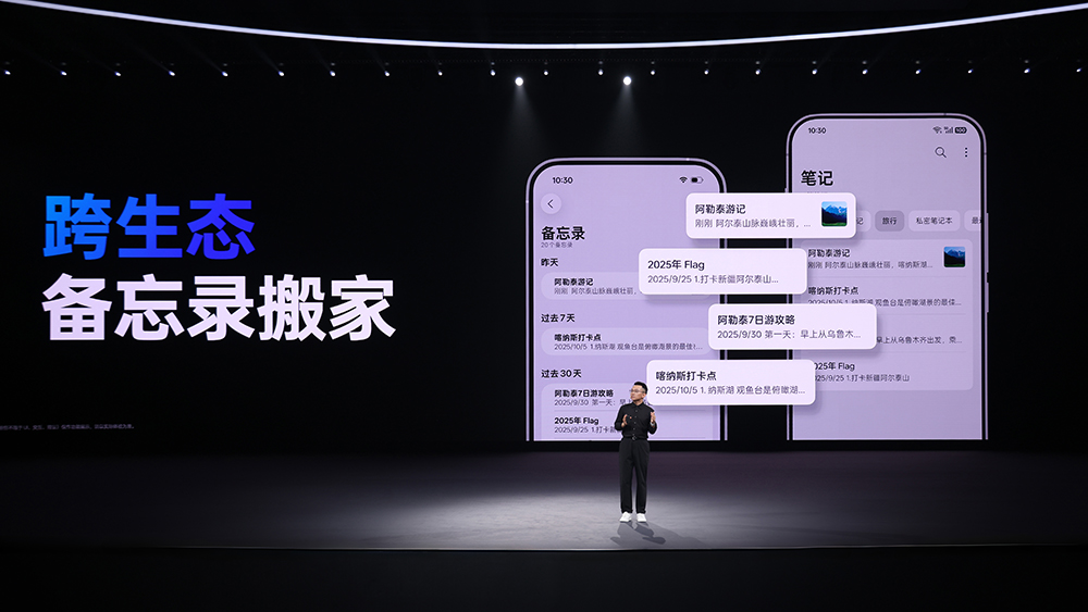 OPPO 也继续推进跨生态的体验,ColorOS 16 和 Apple Watch 做了深度打通,OPPO 手机上可以接听和接收 iPhone 的电话、短信及应用通知,AirPods 也可以开盖即连,苹果端的备忘录现在也可以迁移到 OPPO 这边。