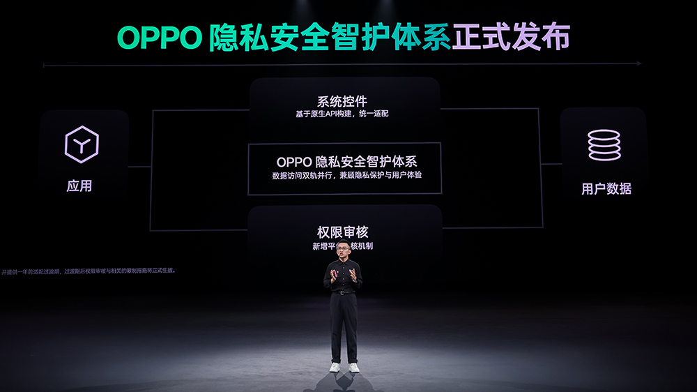 最后 OPPO 还发布了隐私安全智护体系,会以更智能、更友好的全新权限管理帮开发者更高效完成平台权限审核,降低开发和维护成本。
